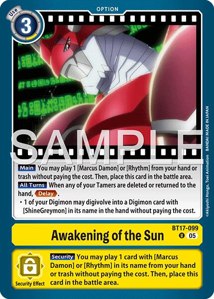 • 1 of your Digimon may digivolve into a Digimon card with [ShineGreymon] in its name in the hand without paying the cost.
