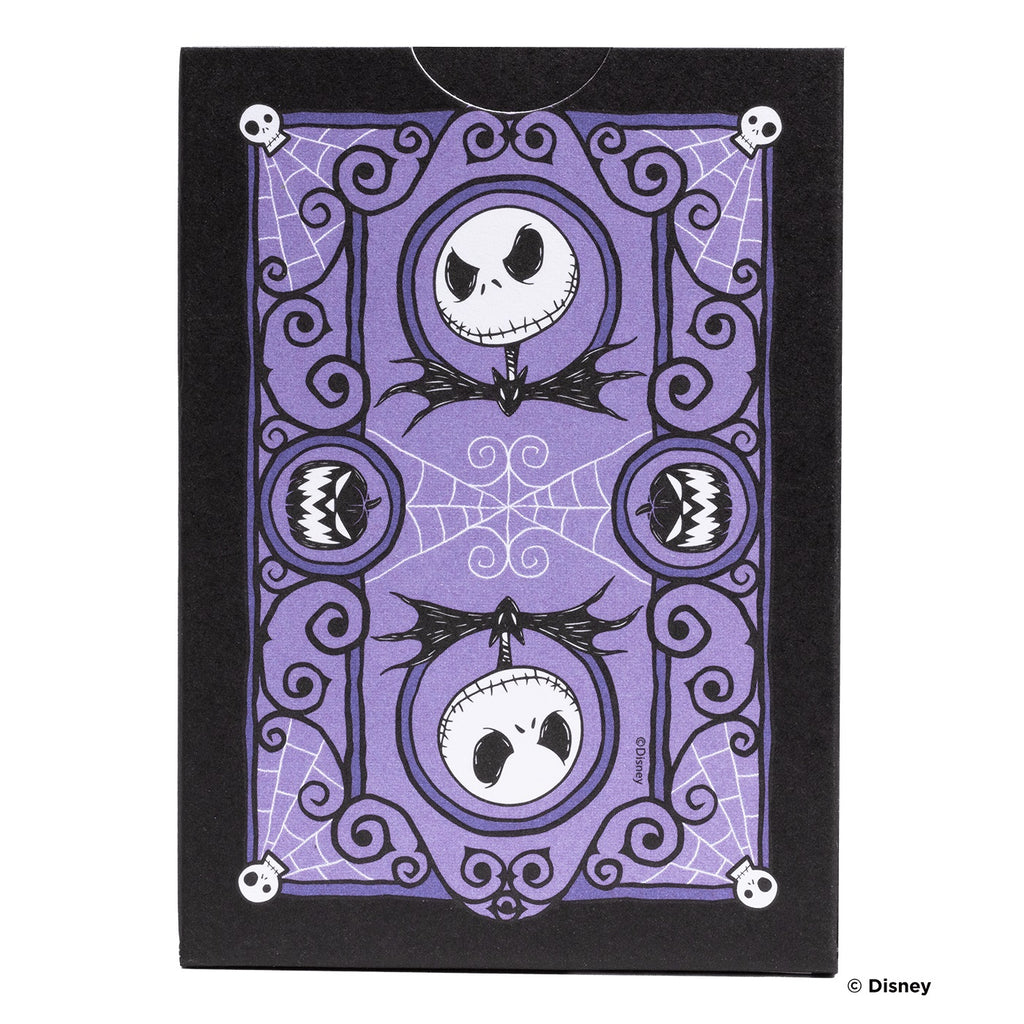 Featuring spindly spiderweb foil on the tuck case and custom designed Jack Skellington card backs, your next night of cards will transport you to Halloweentown.