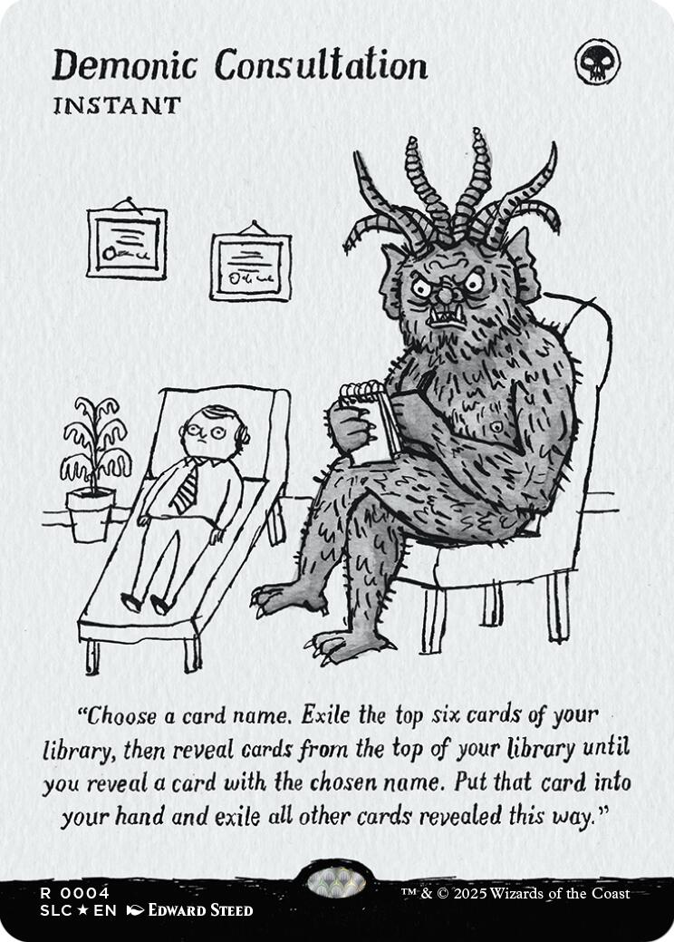 Choose a card name. Exile the top six cards of your library, then reveal cards from the top of your library until you reveal a card with the chosen name. Put that card into your hand and exile all other cards revealed this way.
