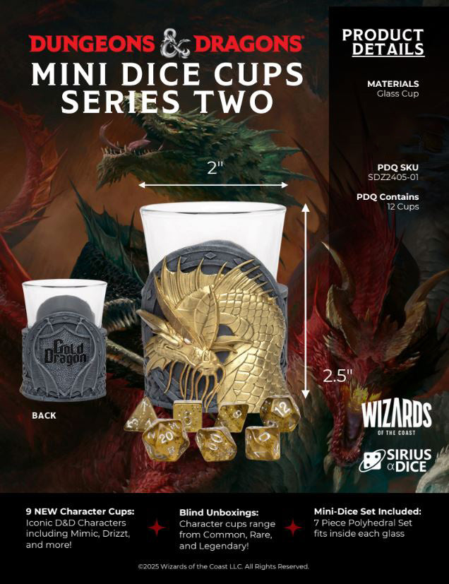 Uncover legendary power in the palm of your hand with the next wave of Dungeon & Dragons Mini Dice Cups. Each blind-boxed cup features a highly detailed sculpt of a classic D&D character—from the terrifying Vecna to the mysterious Guenhwyvar—and holds a 7-piece mini dice set inside.