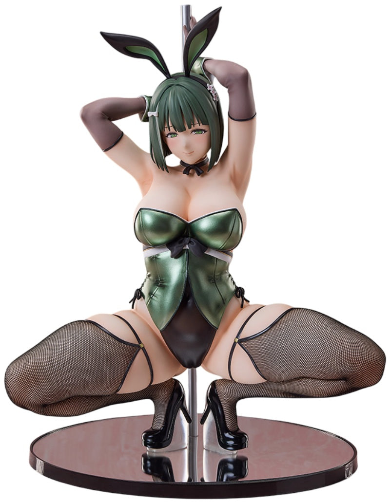 Her voluptuous body is wrapped in a refined and elegant green bunny suit,