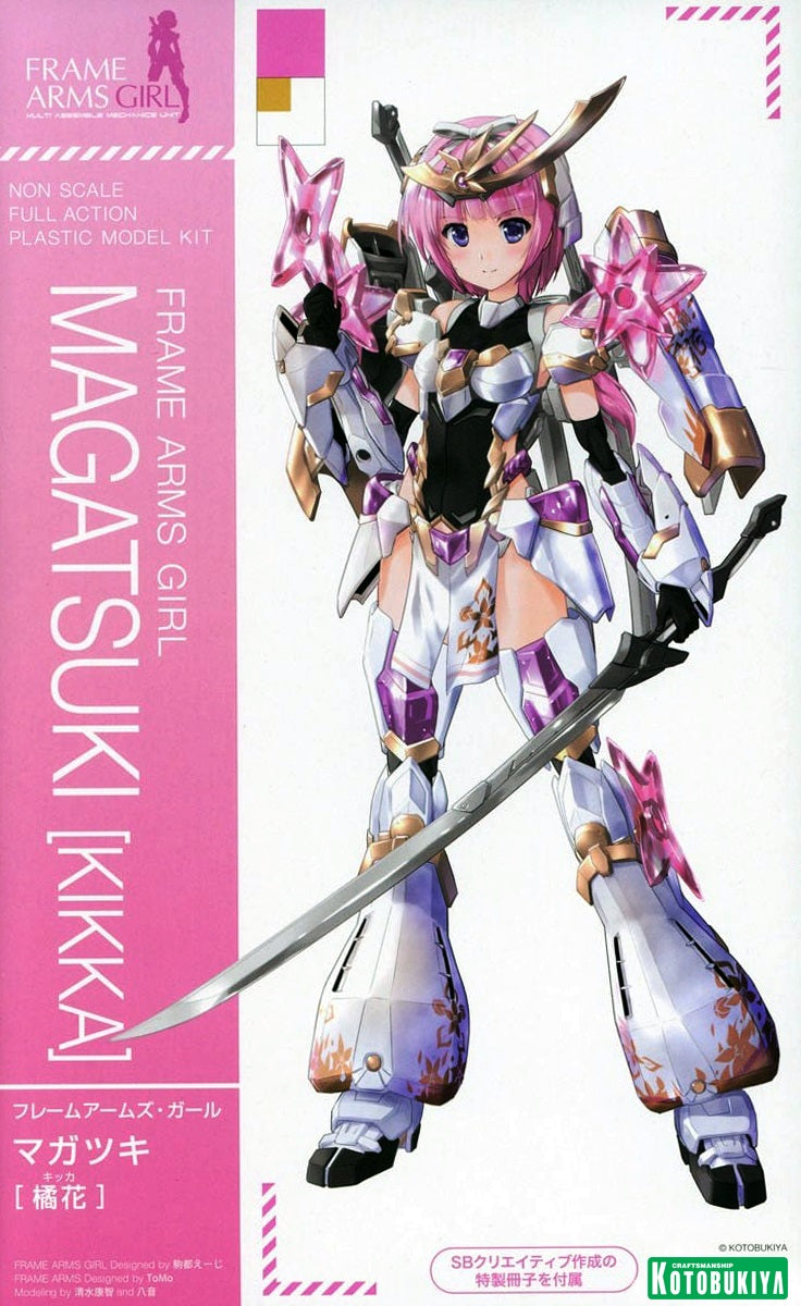 Magatsuki is based on the Frame Arms model of the same name designed by ToMo and transformed into an original female character illustrated by E-ji Komatsu.