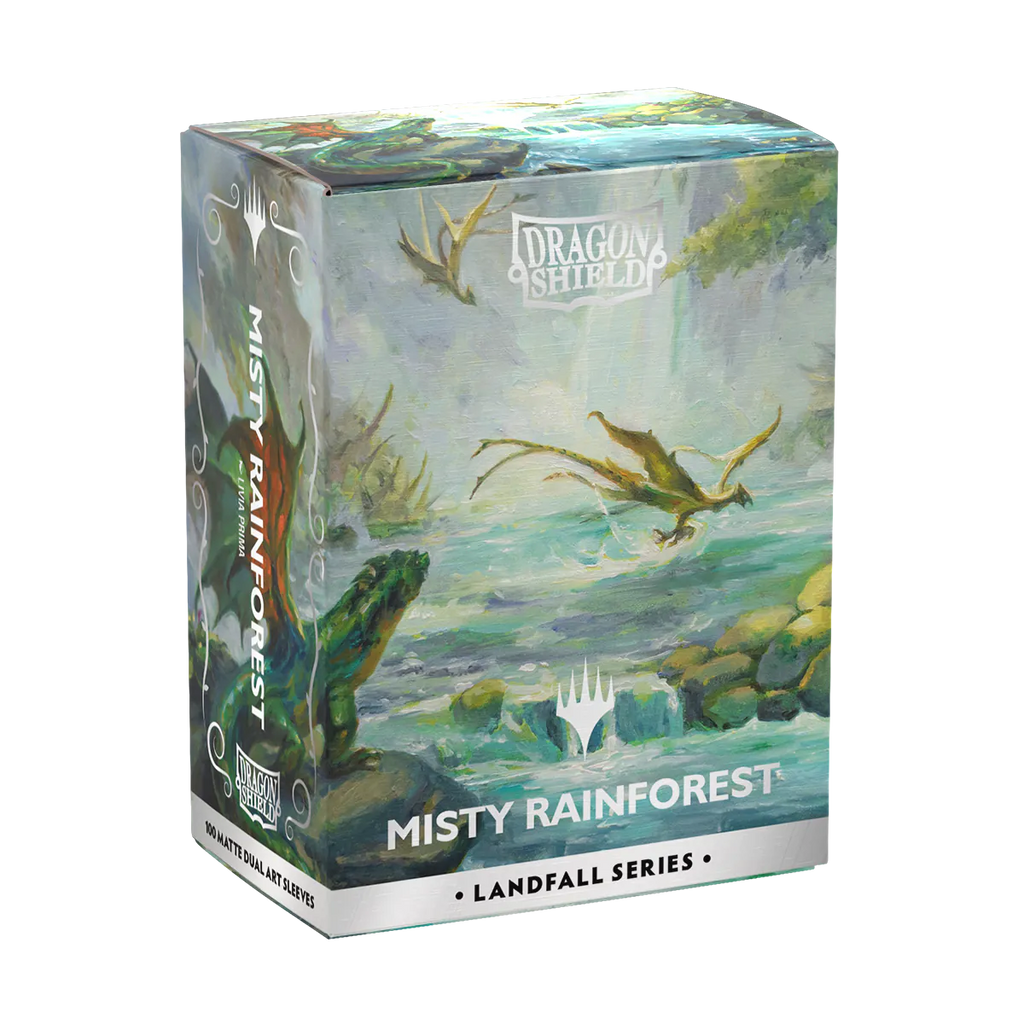 The fetch lands are among the most iconic Magic: The Gathering™ cards ever made. Now, as part of the Landfall Series, you can get the jaw-dropping showcase version of Misty Rainforest – with dragons! – as Dragon Shield Matte Dual Art Sleeves.