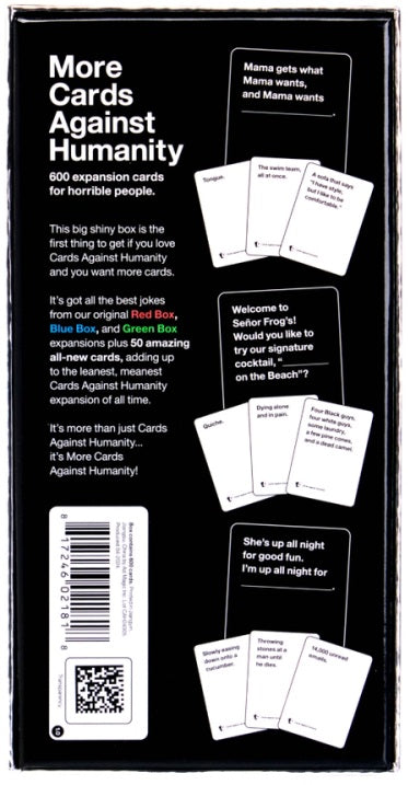 Comes with all the best cards from our original Red Box, Blue Box, and Green Box expansions, plus 50 new ones we’ve never printed before..