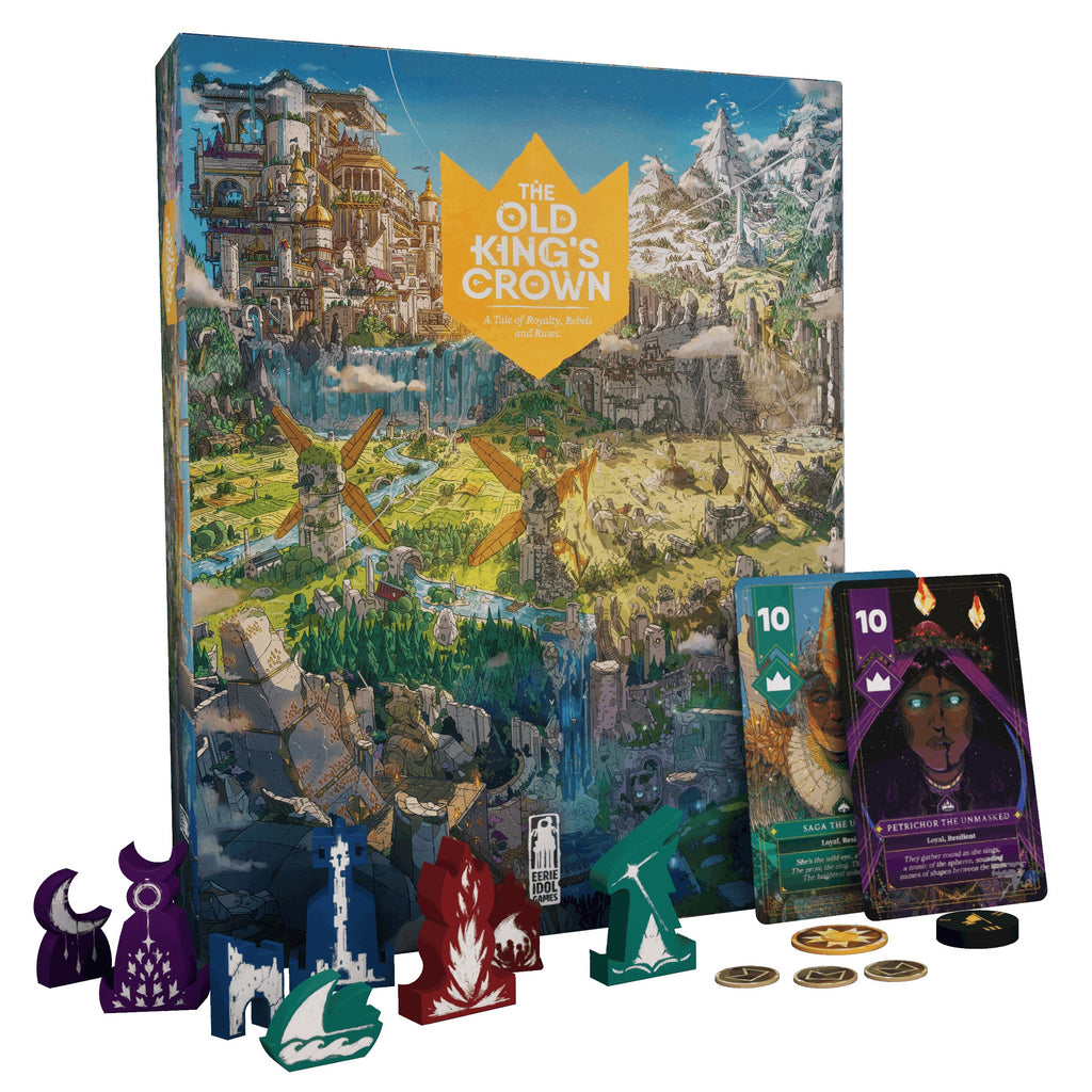 In The Old King's Crown, players move their Herald to locations, hoping to claim them. Then simultaneously players play cards from their hand, facedown to regions of the board. These are then revealed and resolved. Winning these clashes will result in different rewards that further their position and grant them the game's primary goal, influence. When a player is able to reach a set number of influence, dependent on player count, and is able to retain it until the end of a round, they win the game.